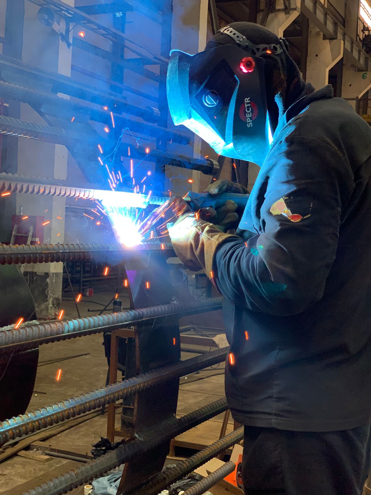 Сварщик на открытой площадке